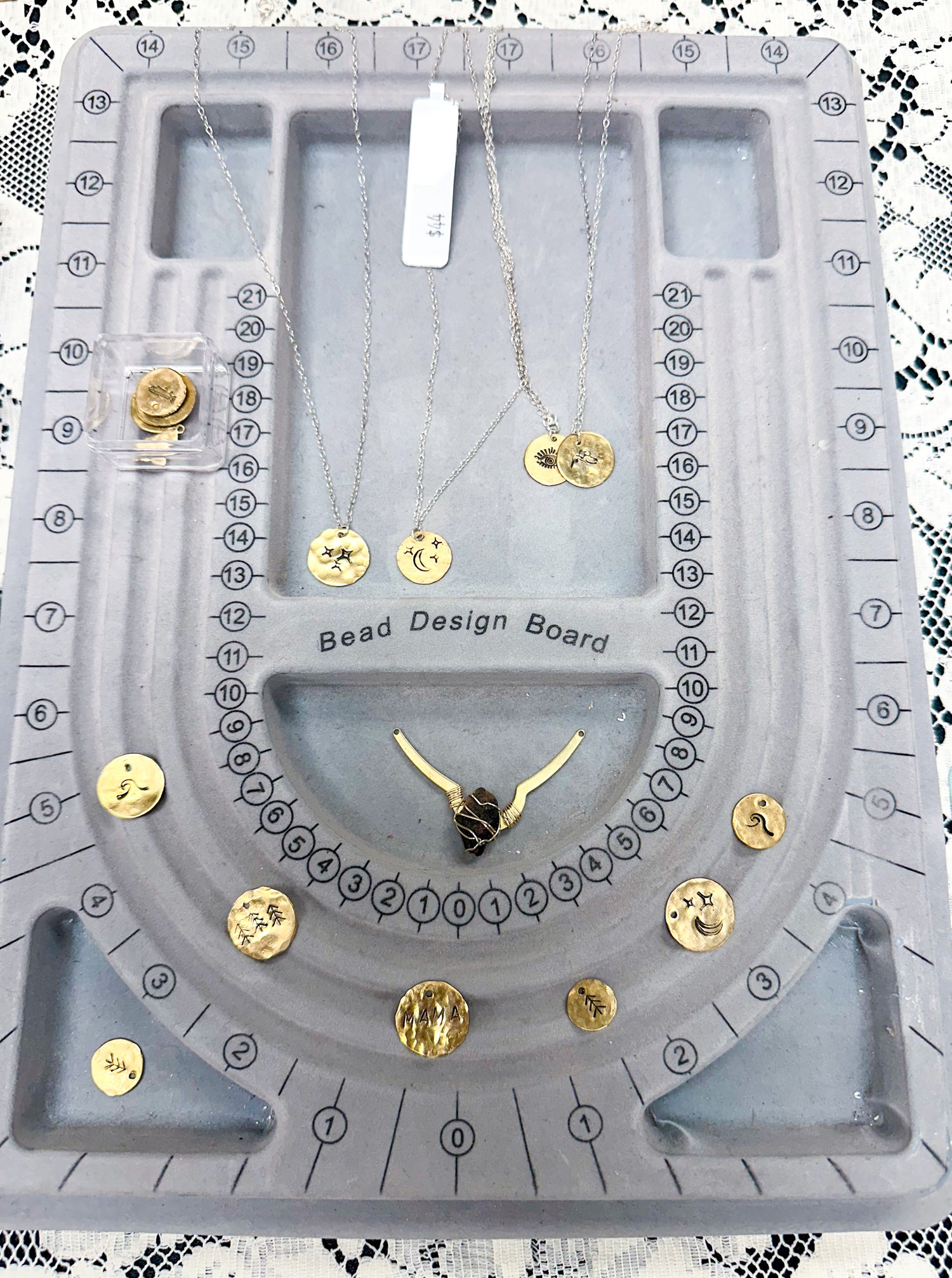 A mobile jewelry experience by Elise Marie DeSigns. Includes found and sourced charms.Guests choose their charms and Elise brings their designs to life on the spot—perfect for events, parties, or creative pop-ups.