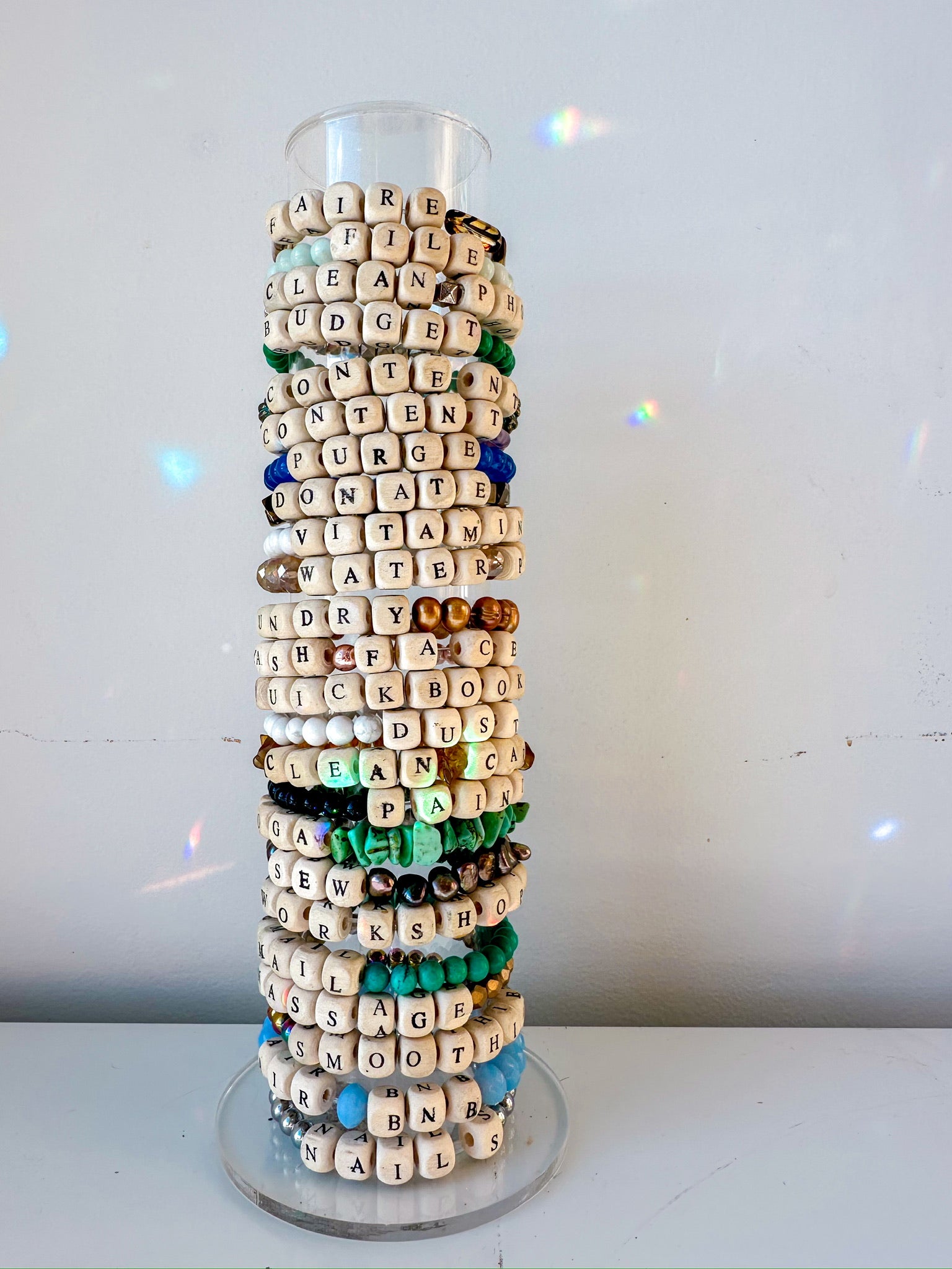 Create three custom stretch bracelets using vintage and mixed beads. Design pieces based on personal mantras, memories, or daily reminders.