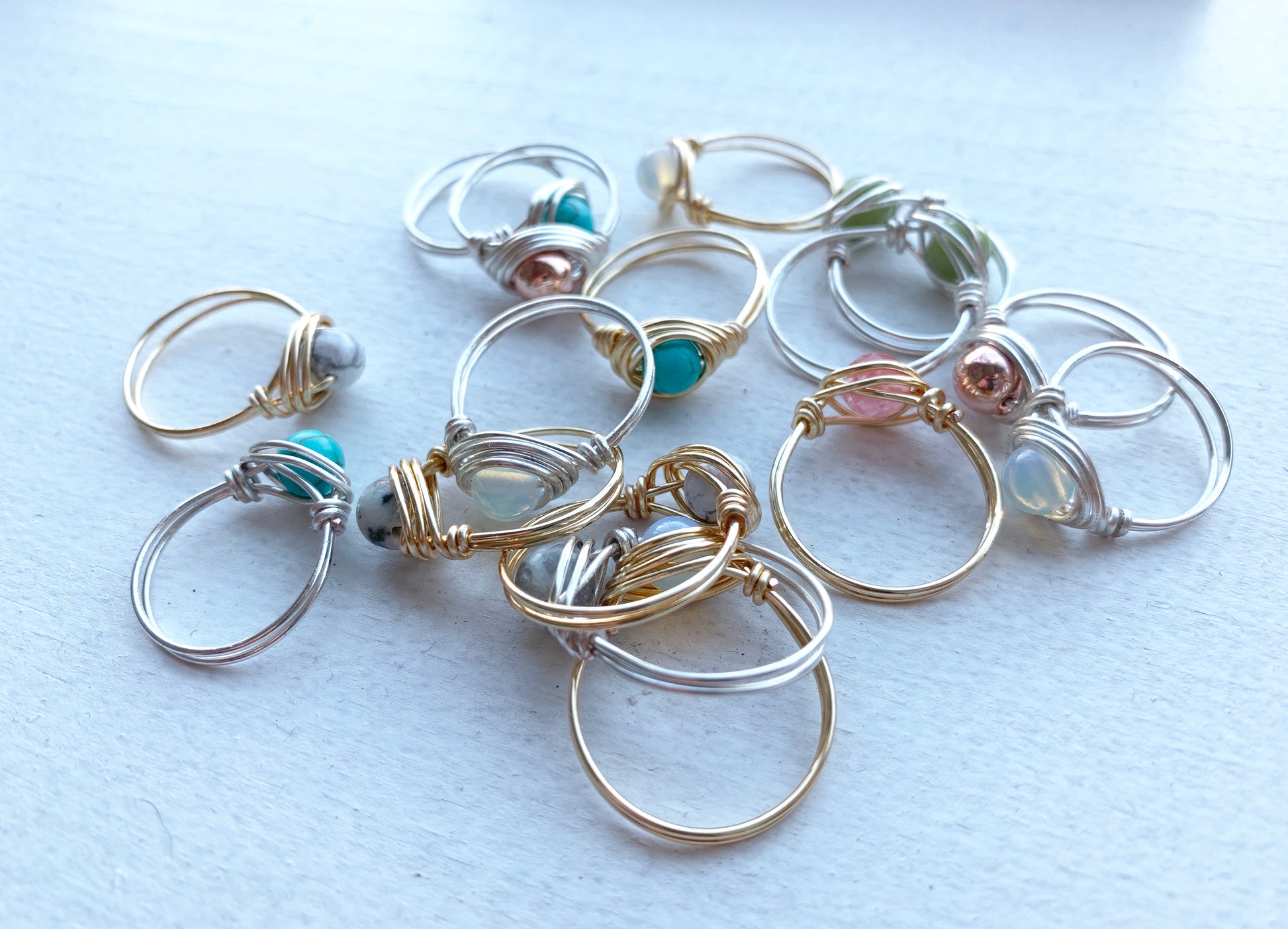 Silver Wire Wrapped Gemstone Rings