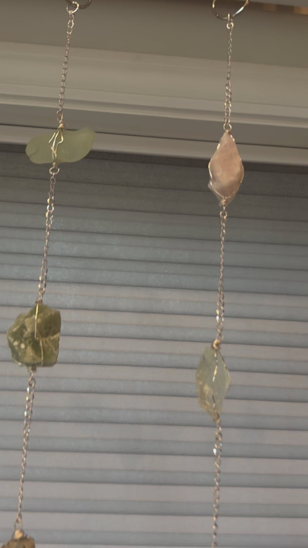 Add a unique touch to your home with our One Of a Kind-Wire Wrapped Stones + Sea Glass Home Decor. Each piece is handmade with found gemstones and sourced gemstones, as well as Found Maine sea glass, making it a one of a kind gift. Catching the sun's rays and bringing good vibes to your space.