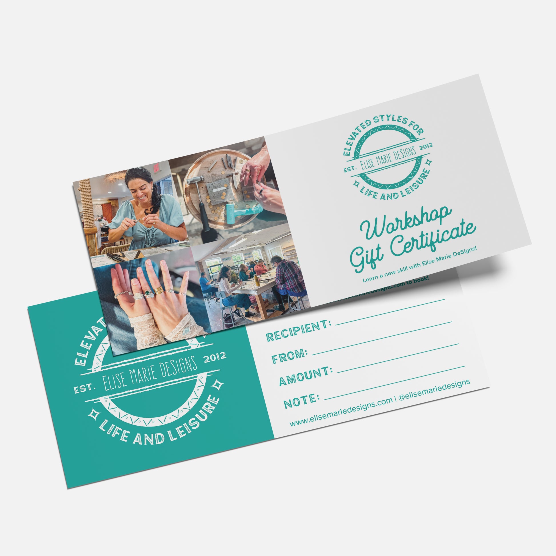 *Note that this gift card is only redeemable for an Elise Marie DeSigns workshop. For electronic gift certificates that are redeemable for online purchases, click here.