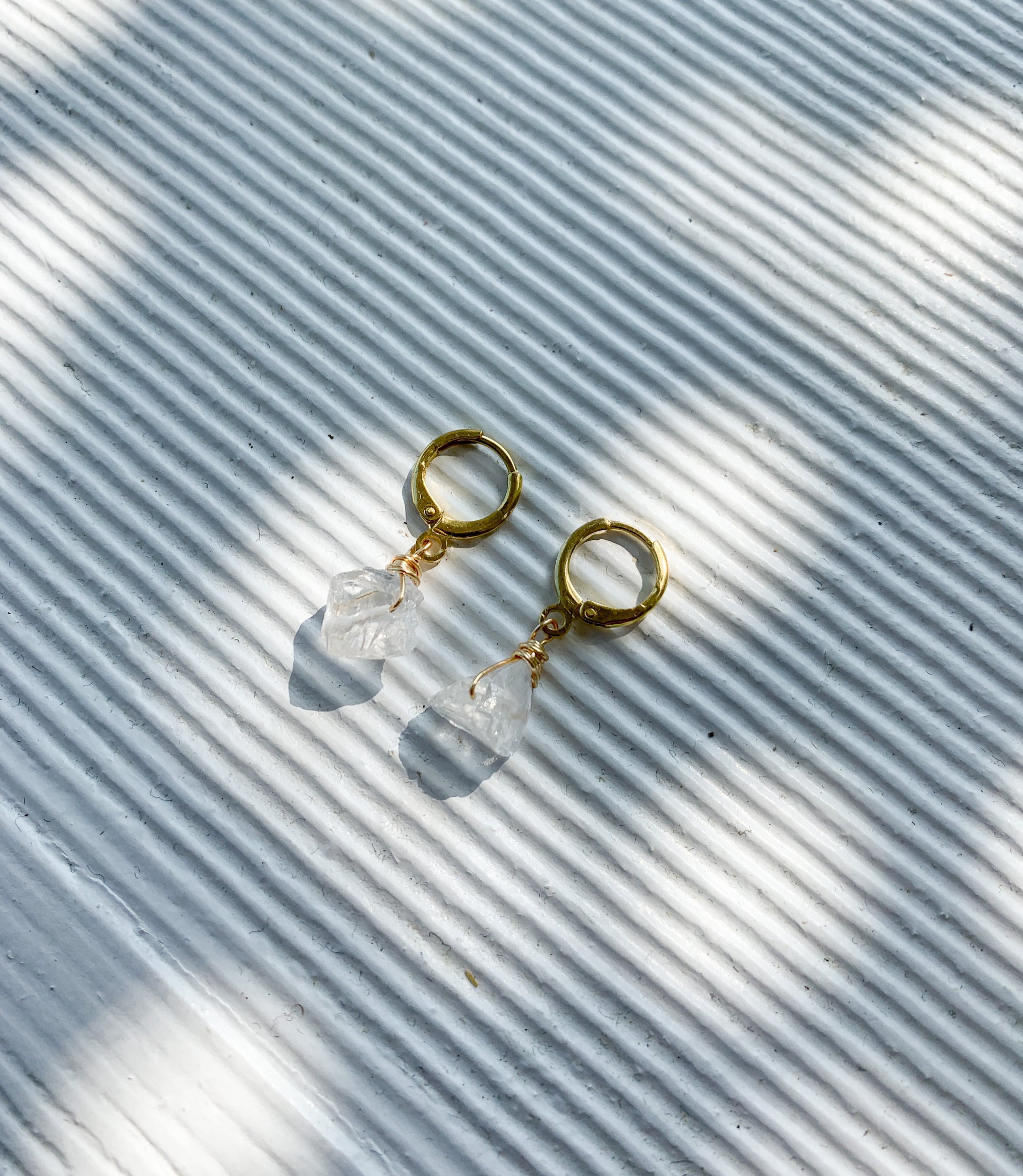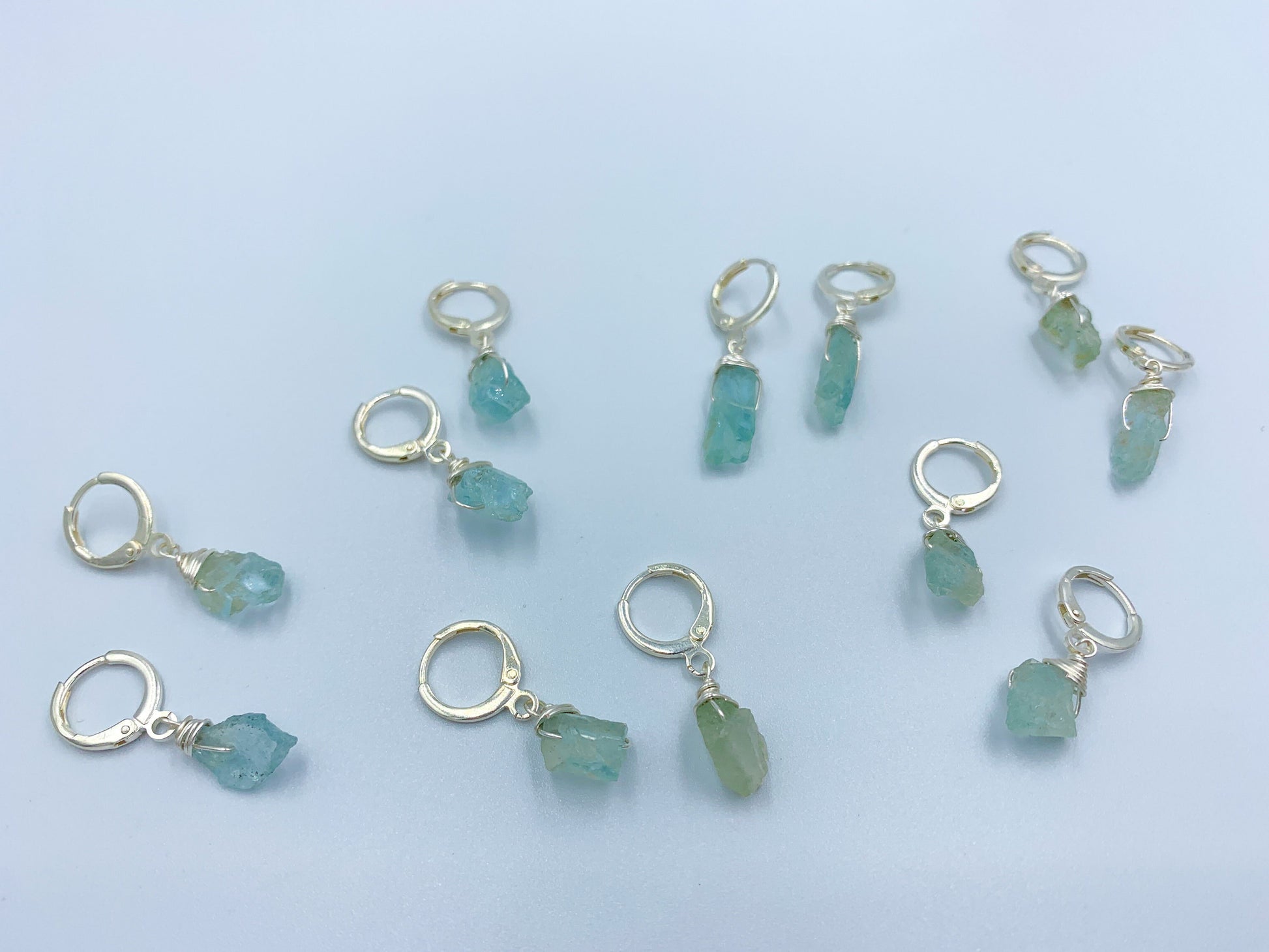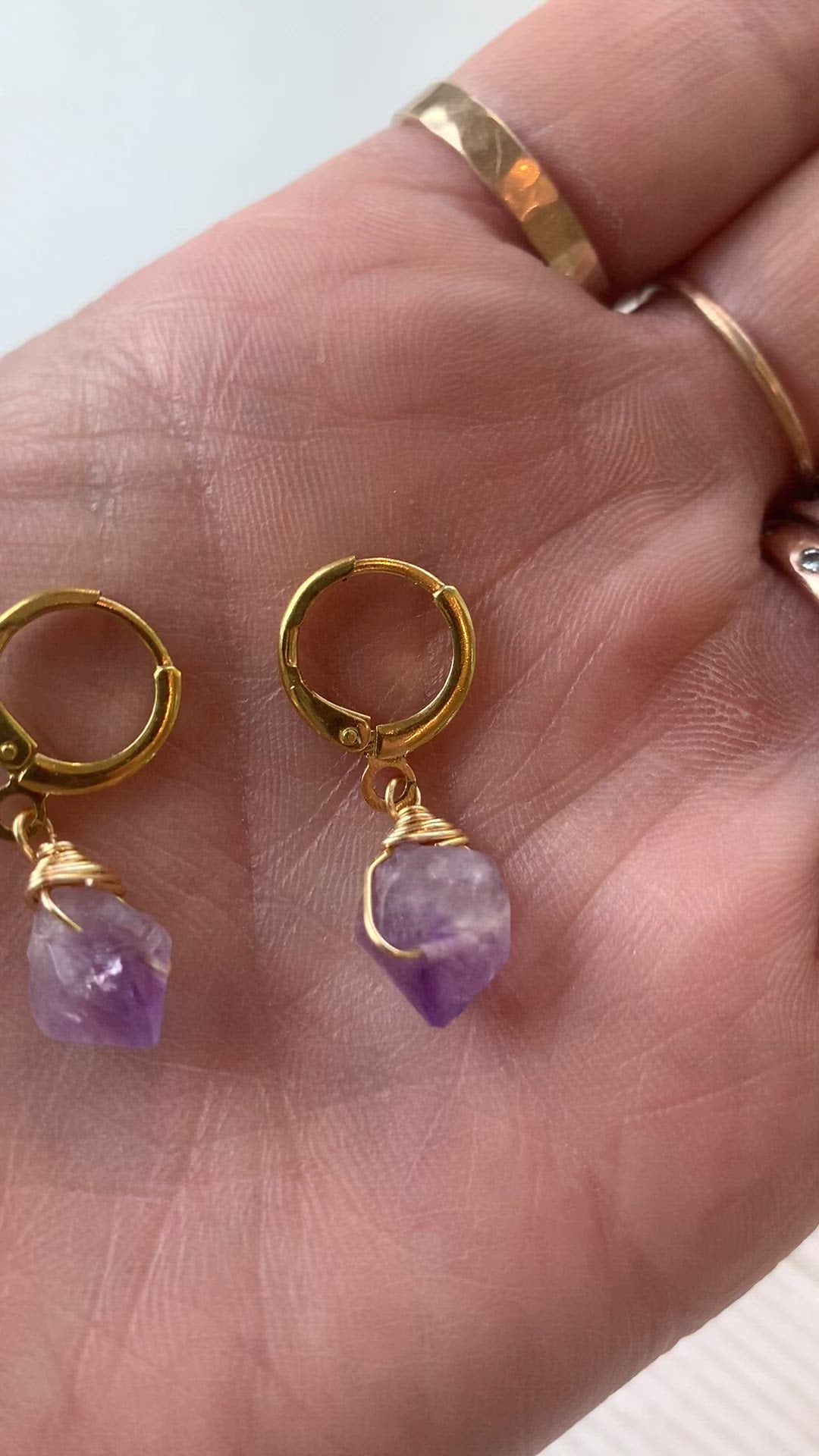 New addition to our earring wire collection - huggie earrings are small hoops that "hug" and sit close to your earlobe. These new huggies accompany a small raw gemstone. Each of these earrings are made-to-order - select the earring color that matches your personal style. See reference photos for huggie metal colors and raw gemstone choices.