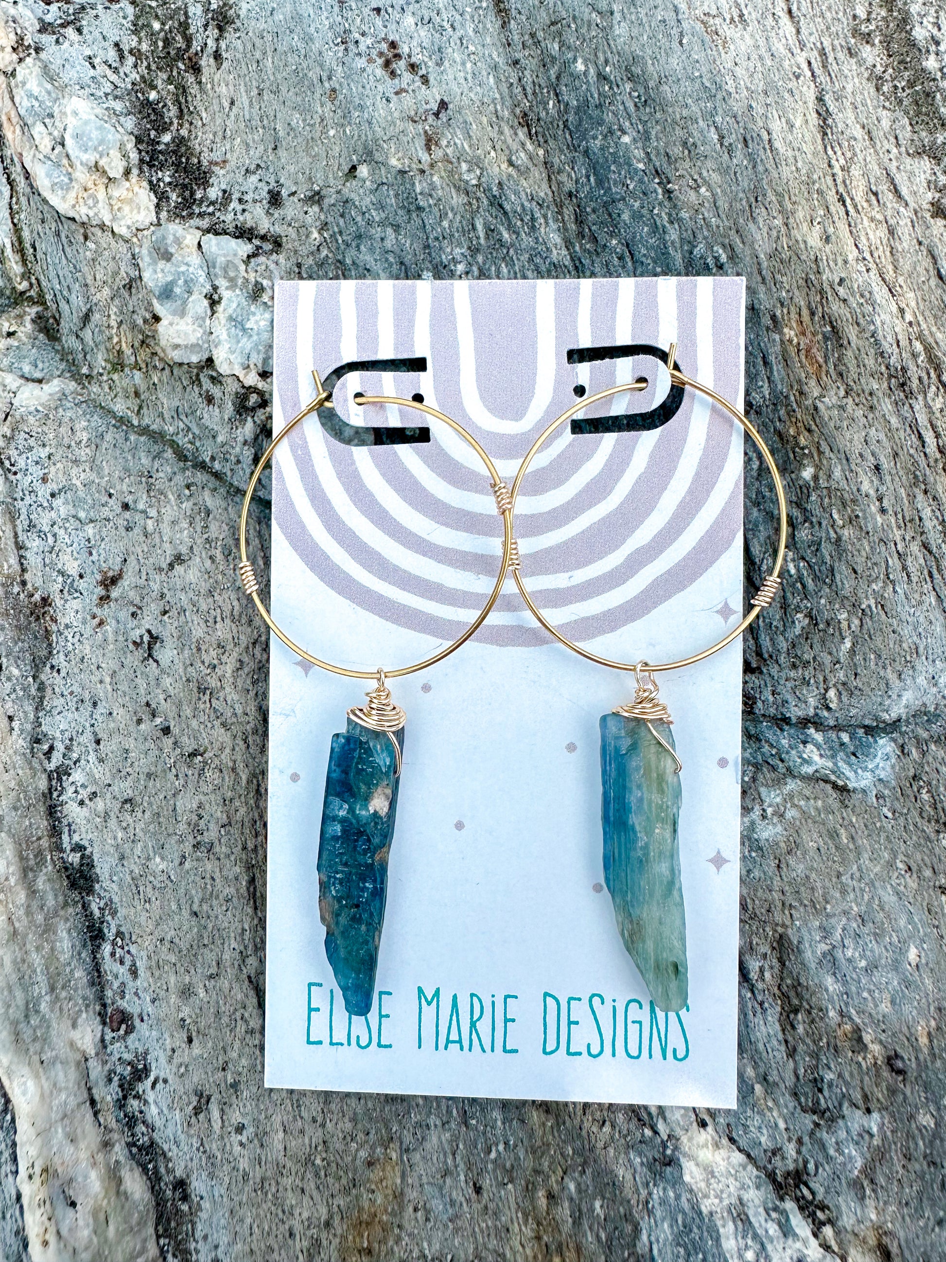 Materials: Gold or Silver stainless steel hoop earring and assorted kyanite stones