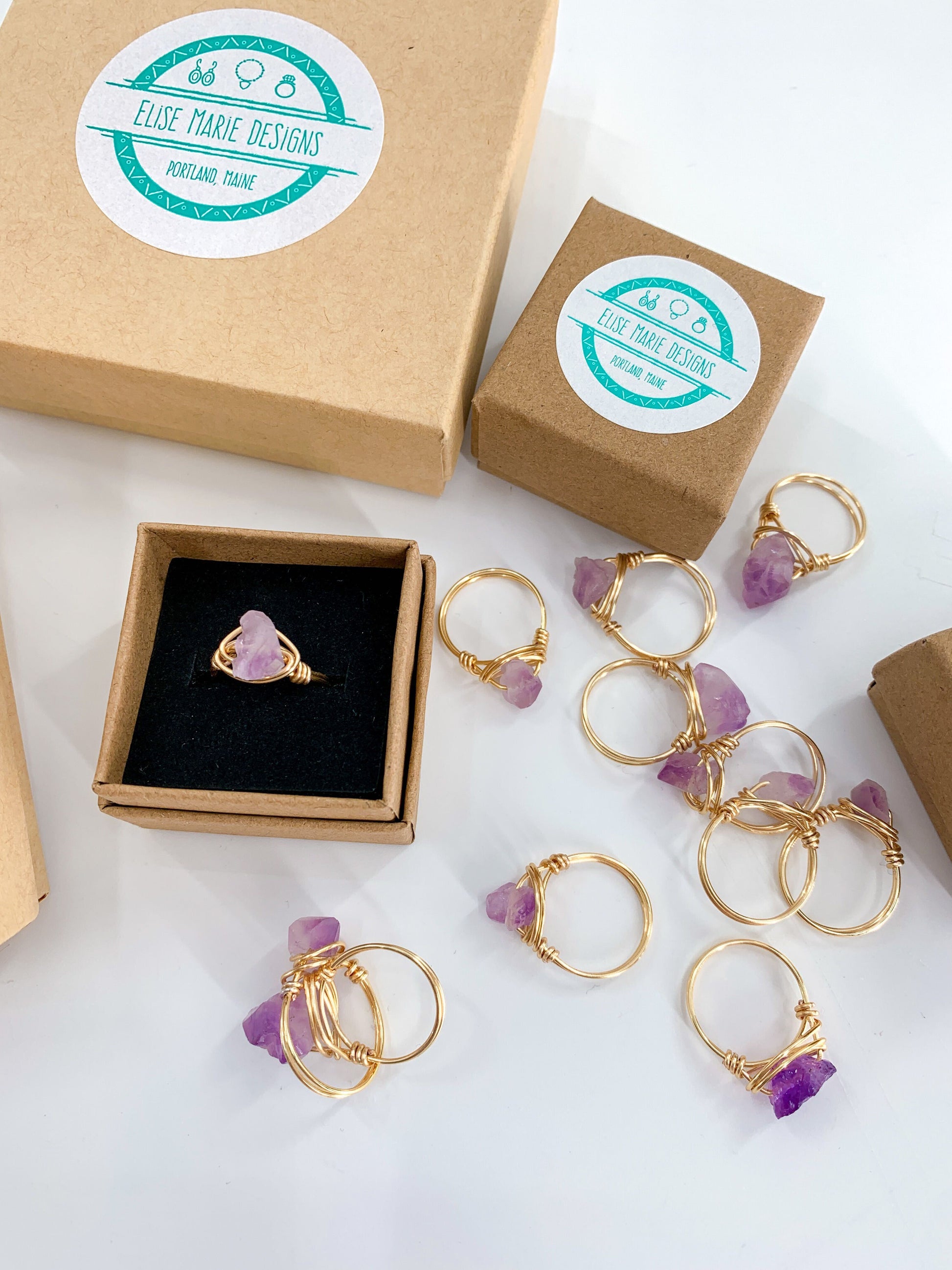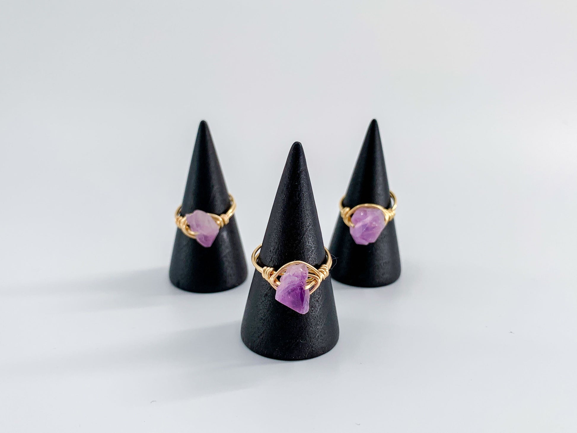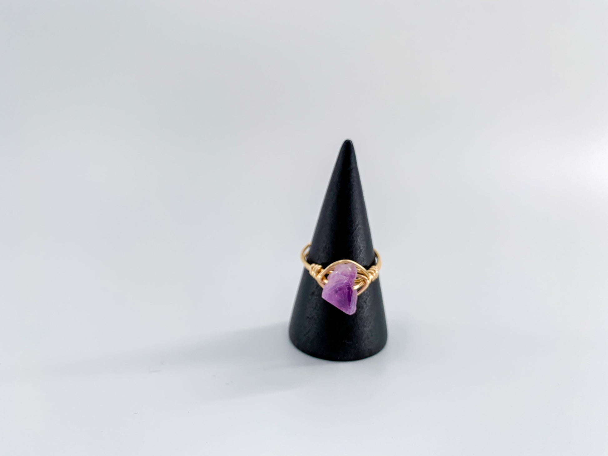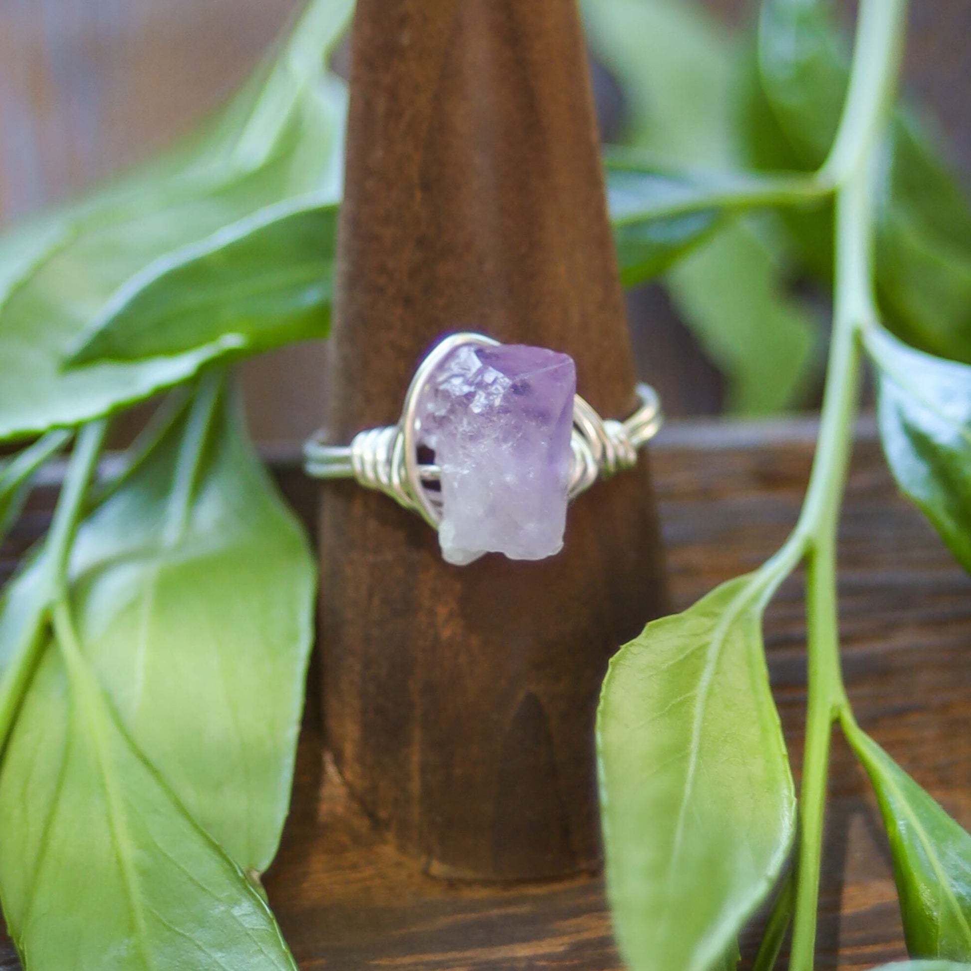 Featuring a raw crystal, these statement wire rings are hand-wrapped and made-to-order. Choose your wire color and ring size to make it your own!