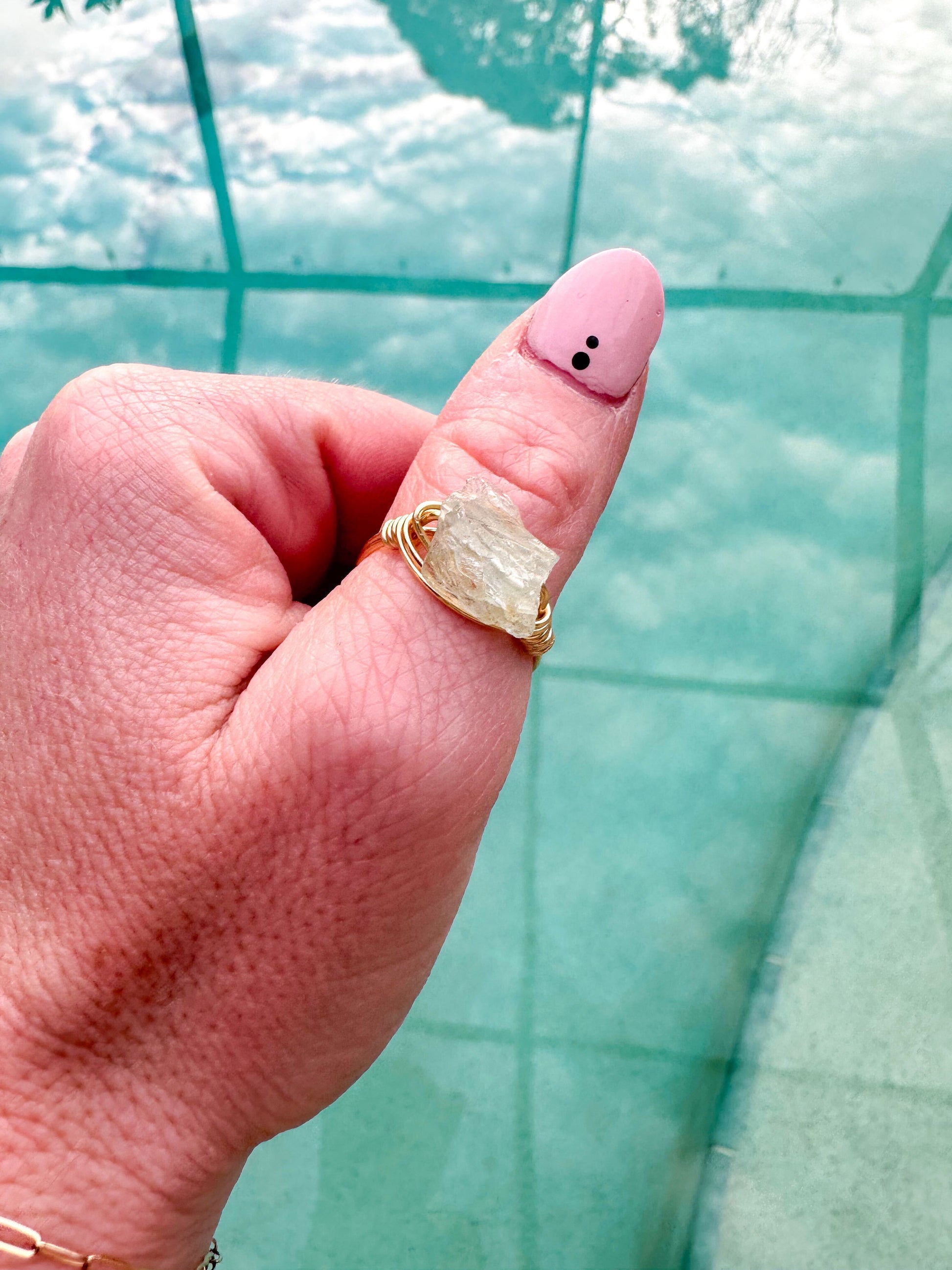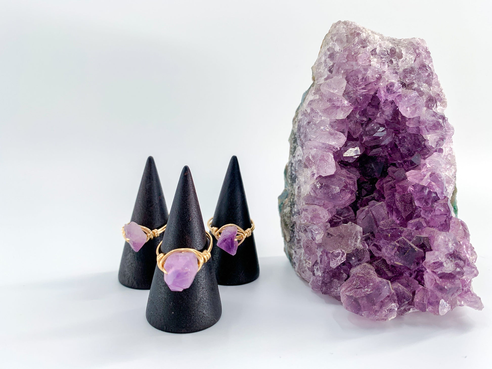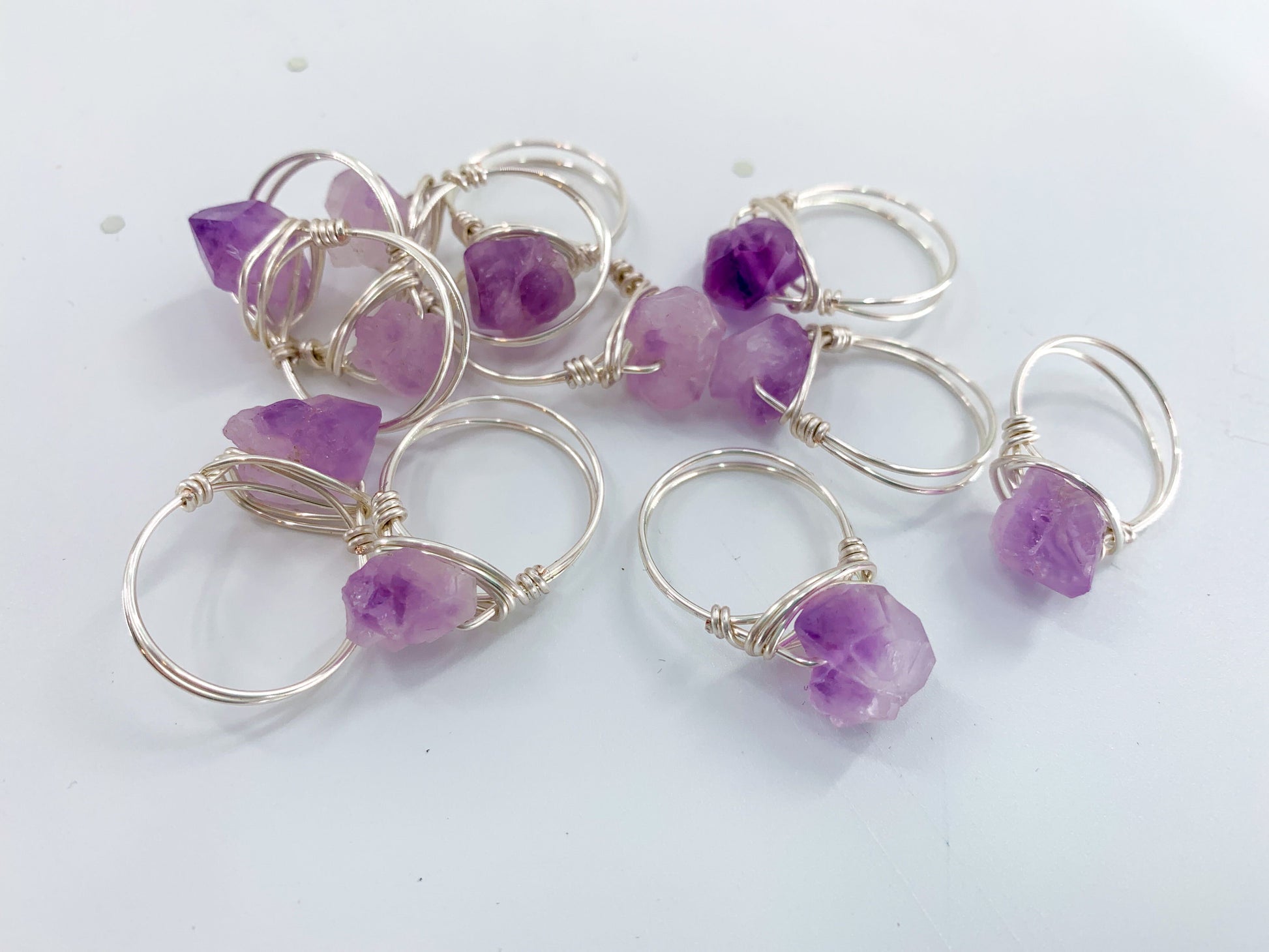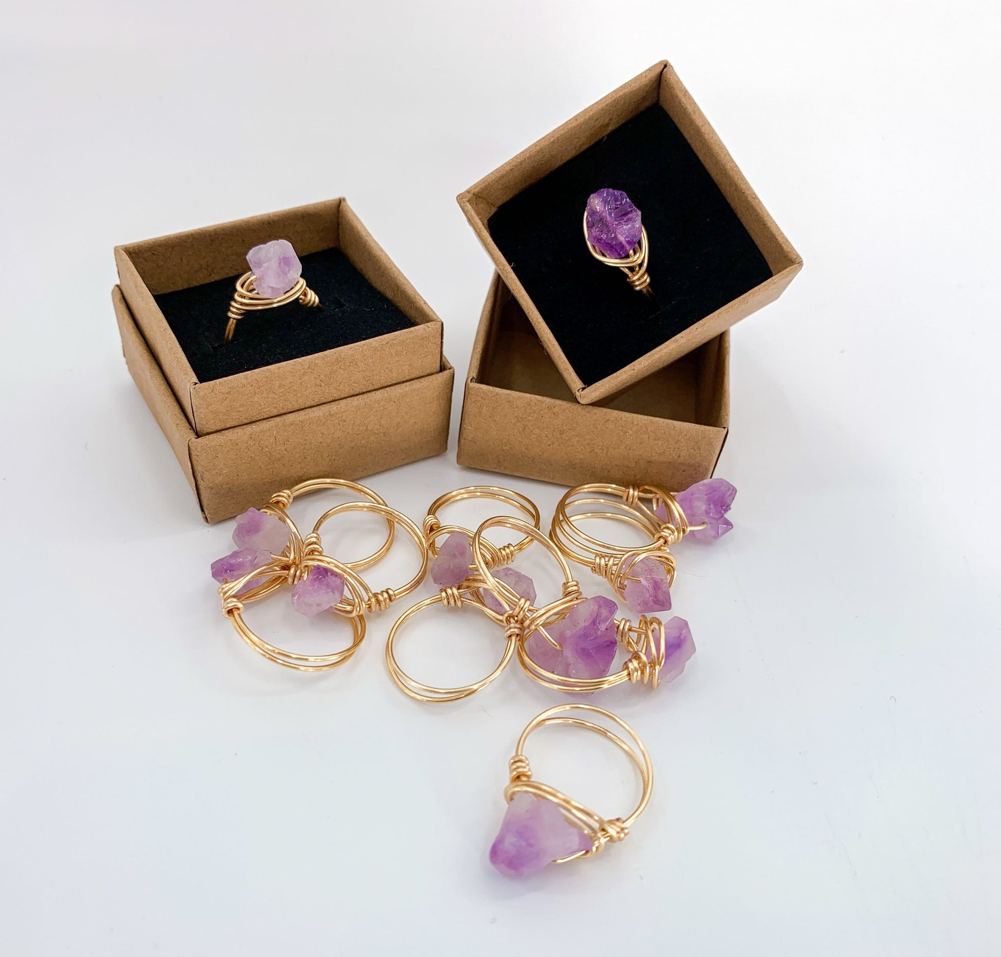 Featuring a raw crystal, these statement wire rings are hand-wrapped and made-to-order. Choose your wire color and ring size to make it your own!