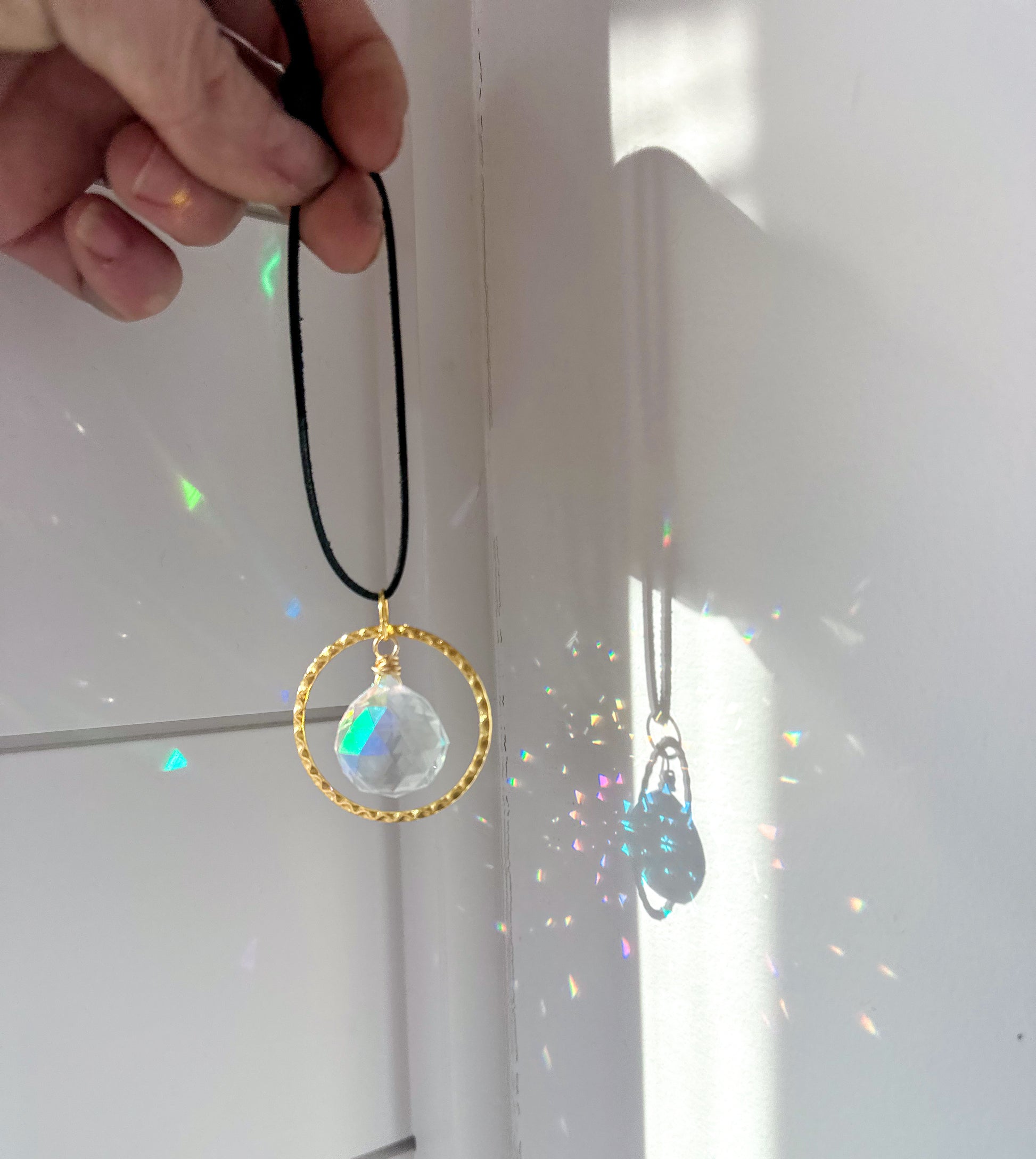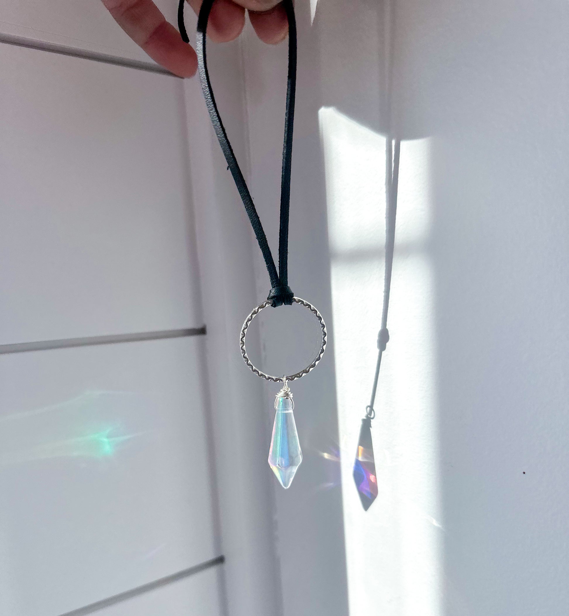 Elevate your holiday decor with our Sun Catcher Ornaments! Choose from 3 options and trust the process as we pick the perfect wire and suede colors. These unique pieces shoot rainbows, making them perfect for any tree or wall all year round. For a boho- and chic-inspired Christmas, they can even hang from your rearview mirror!
