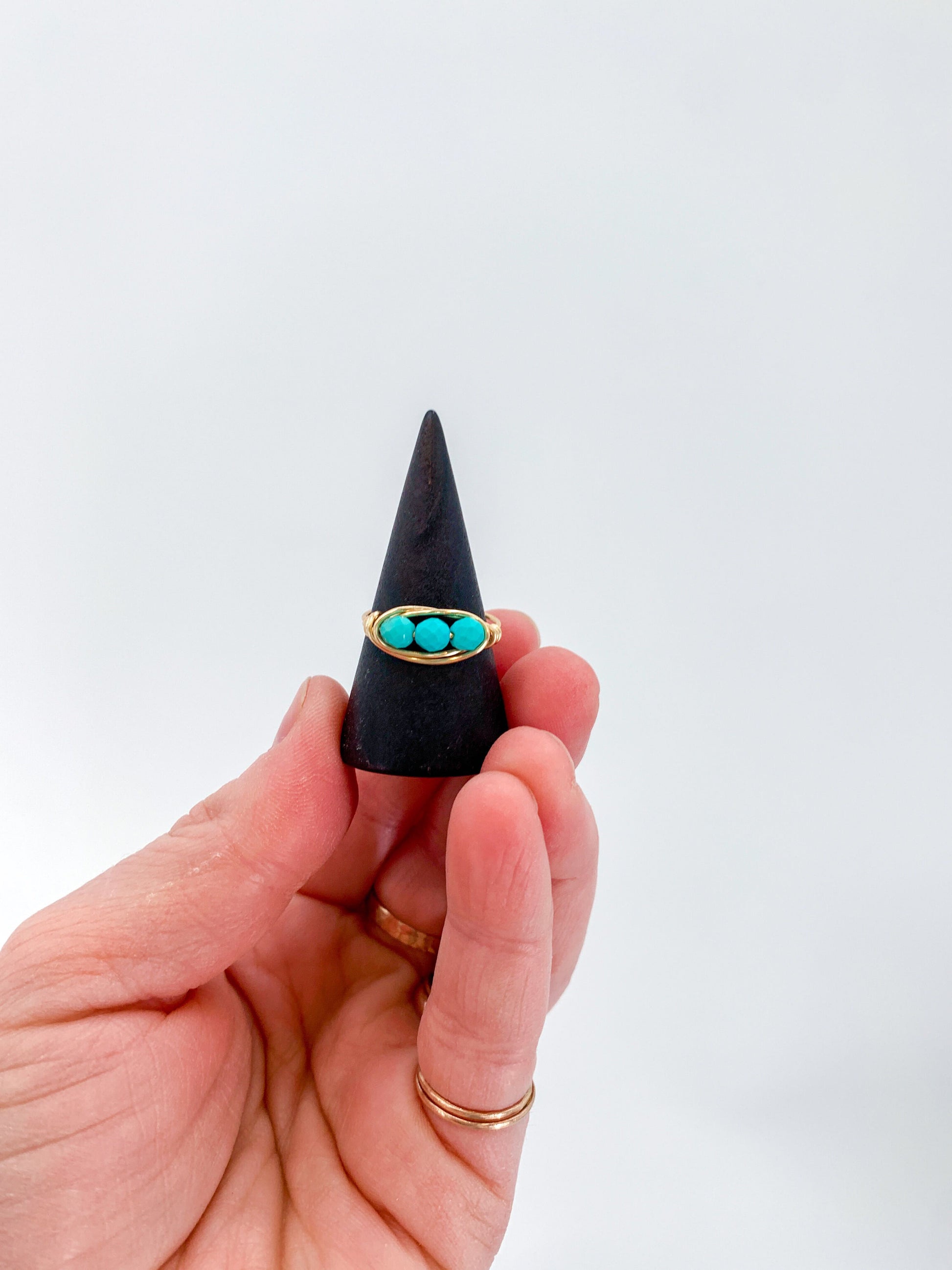 Beautiful and fully customizable Gold Plated Triple Stone Birthstone Ring. Each of these rings are handmade-to-order- meaning you can choose your birthstone or the stone that resonates with you. Choose your gemstone and ring size to make it your own! Find our quick reference stone guide here.